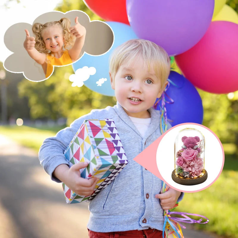 Imagine her eyes lighting up as she lifts the lid to reveal this enchanting gift—the preserved rose glowing softly under LED lights, the sweet teddy bear nestled beside it, the realization that you chose something truly special. It's not just a gift; it's a moment she'll remember, a treasure she'll display with pride, and a daily reminder of your love.